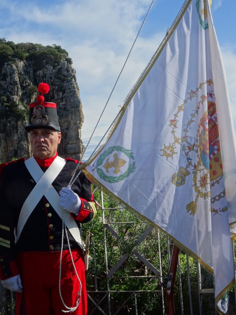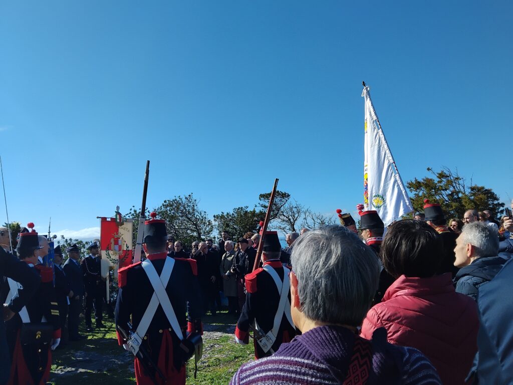 La corona è come sempre stata offerta dall’Associazione Nazionale “Ex Allievi Nunziatella”. Mentre l’Associazione “1° Reggimento Re” ha donato agli astanti la rievocazione storica del saluto militare con colpi a salve di fronte all’alzabandiera con lo stemma reale. Il tutto con figuranti in divisa militare borbonica finemente ricostruita nei minimi particolari.
