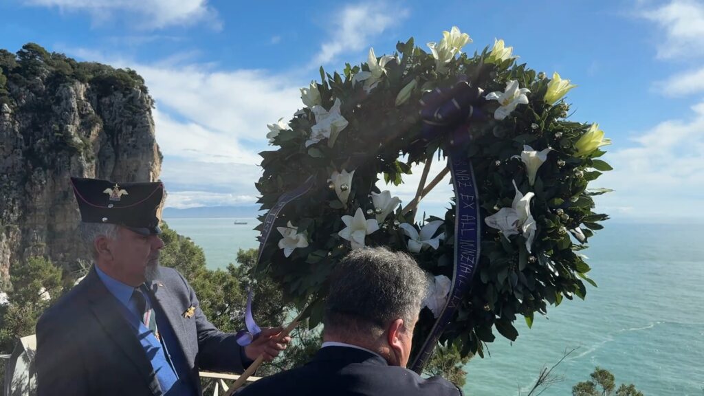 Dopo la funzione, presieduta da S.E. Mons. Luigi Vari, Arcivescovo di Gaeta, è seguita la tradizionale cerimonia del lancio della corona di fiori in mare dalla sommità della falesia.
