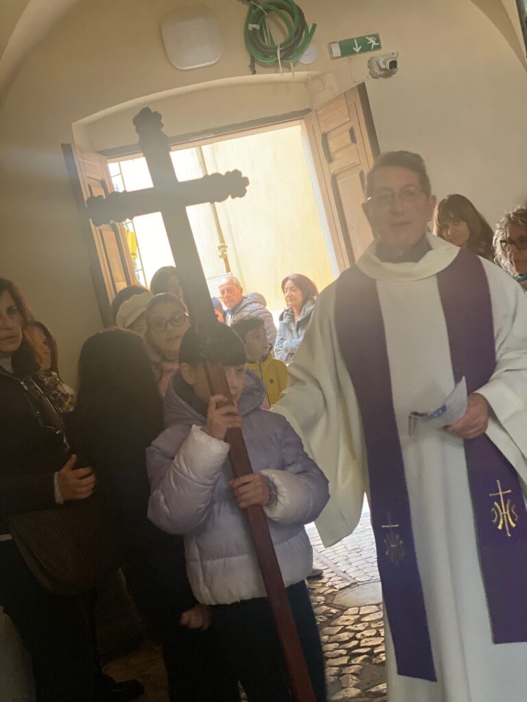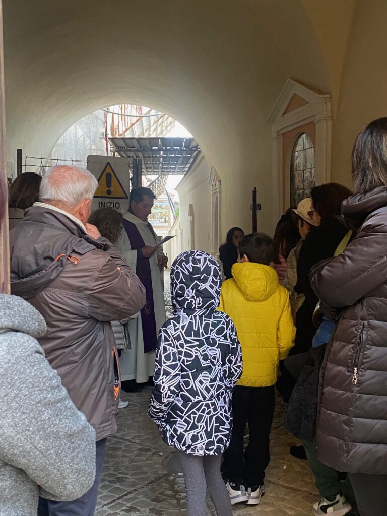 Il gruppo, composto da adulti e bambini del catechismo, ha percorso insieme le stazioni della Passione di Cristo in un clima di preghiera e devozione, nonostante le impalcature dei lavori in corso. Un’esperienza significativa, soprattutto per i più piccoli, che hanno potuto vivere da vicino il valore profondo di questo cammino spirituale, accompagnati dalla guida amorevole della loro comunità parrocchiale.