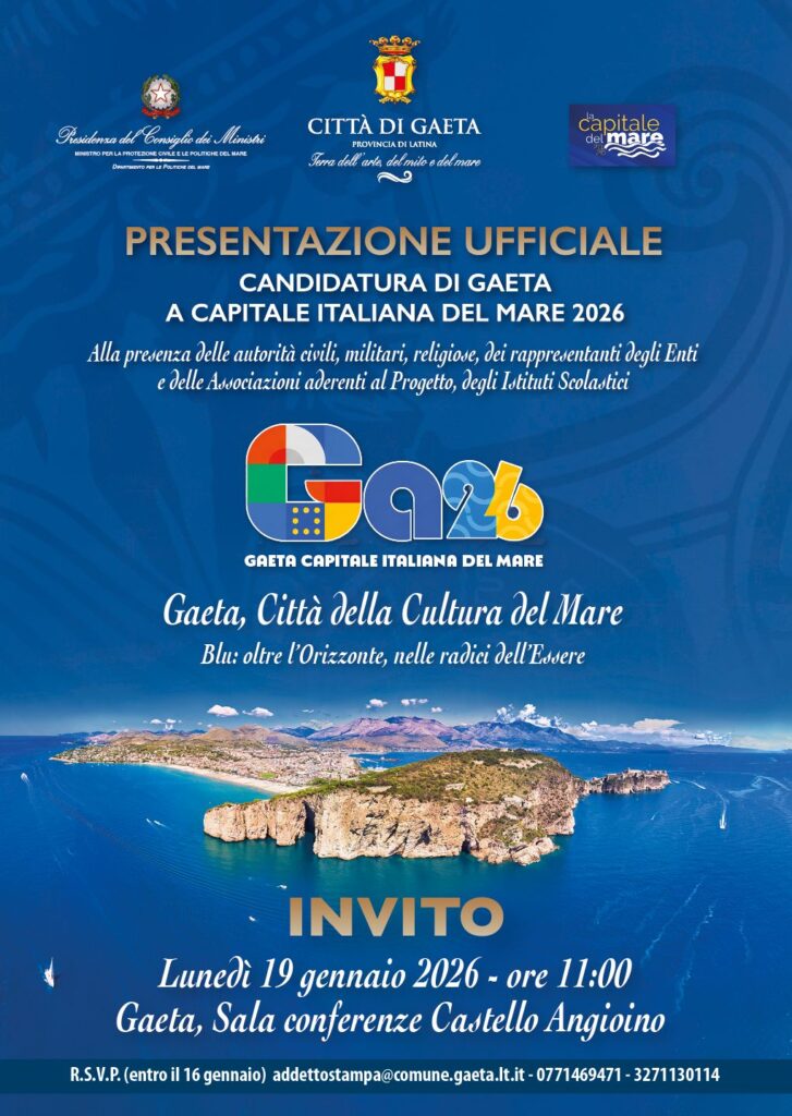 Lunedì 19 gennaio 2026, presso il Castello Angioino di Gaeta, si è tenuta la presentazione ufficiale della candidatura di Gaeta a Capitale Italiana del Mare 2026.