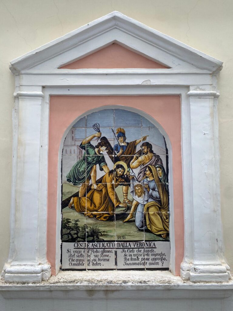 Ferdinando II commissionò a Raimondo Bruno le nuove 14 stazioni nel corridoio che antecede l’entrata alla Montagna Spaccata. Le stazioni sono dipinte su ceramica di Vietri e accompagnate dai versi del compositore Metastasio.